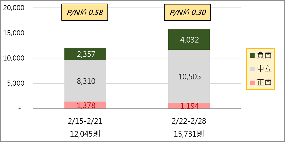 據(jù)《山水民調(diào)X輿情觀測》資料可知,若相較前一週數(shù)據(jù),江啟臣的總聲量由12,045則增加至15,731則,提升幅度超過三成,然而主要增加的意見,卻大多是負面評價,顯然高聲量是被「罵」出來的,江啟臣的P/N值也因此由前一週的0.58降為0.30。網(wǎng)友對此批評「江啟臣邀請柯文哲,堪比吳三桂引清兵入關(guān)」、「小孩開大車」、「與虎謀皮,必死無疑」、「江啟臣對囤房稅的討論一直在閃躲」、「病急亂投醫(yī)吧,趙少康一直在逼他」。